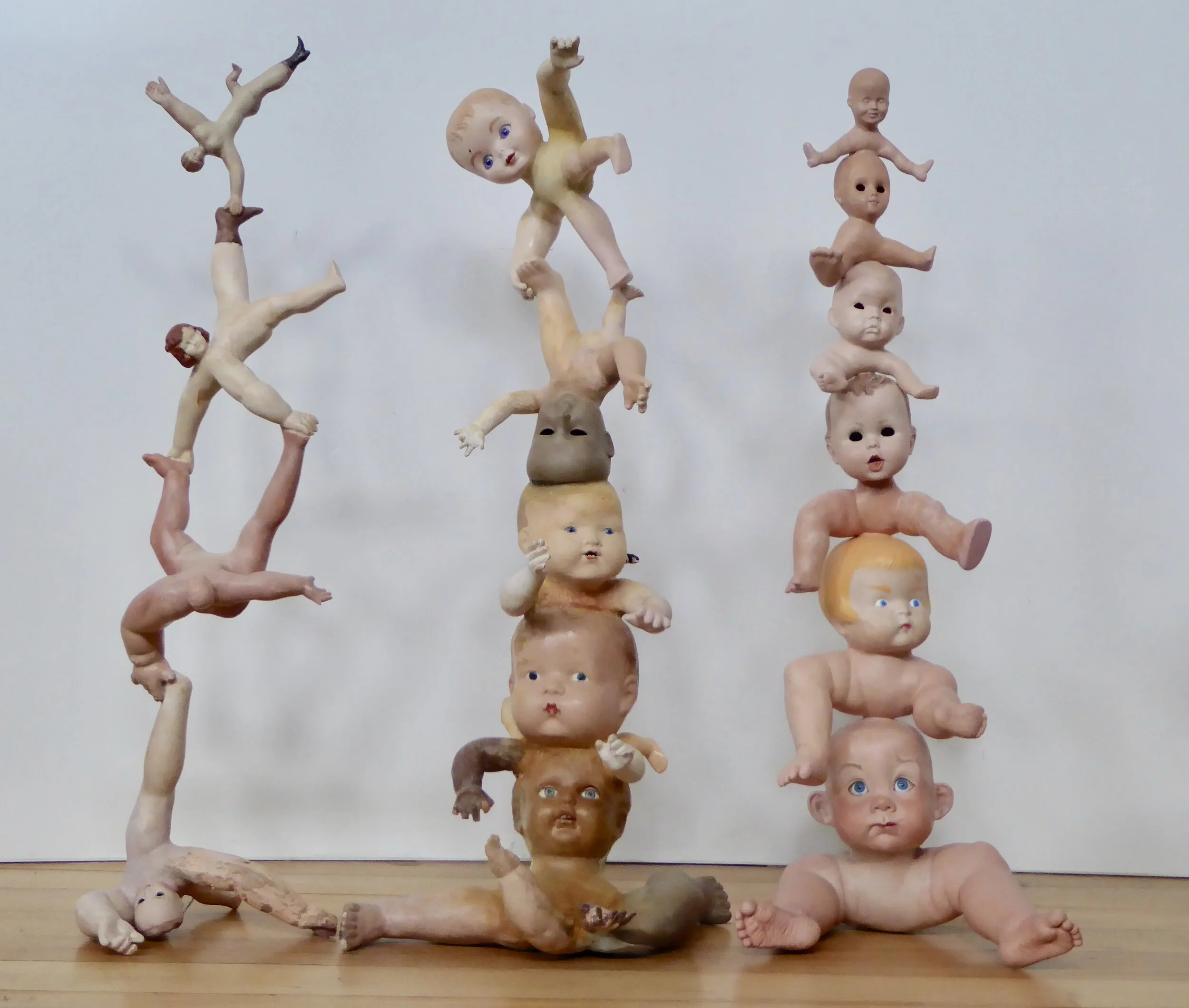 PORCELAIN sculptureThree towers of FunPORCELAIN, 36 x 6 x 3, $ 1,500Everyone is balancing. The piece on the right is called “Look Ma, No HandsPURCHASE WORK View fullsize